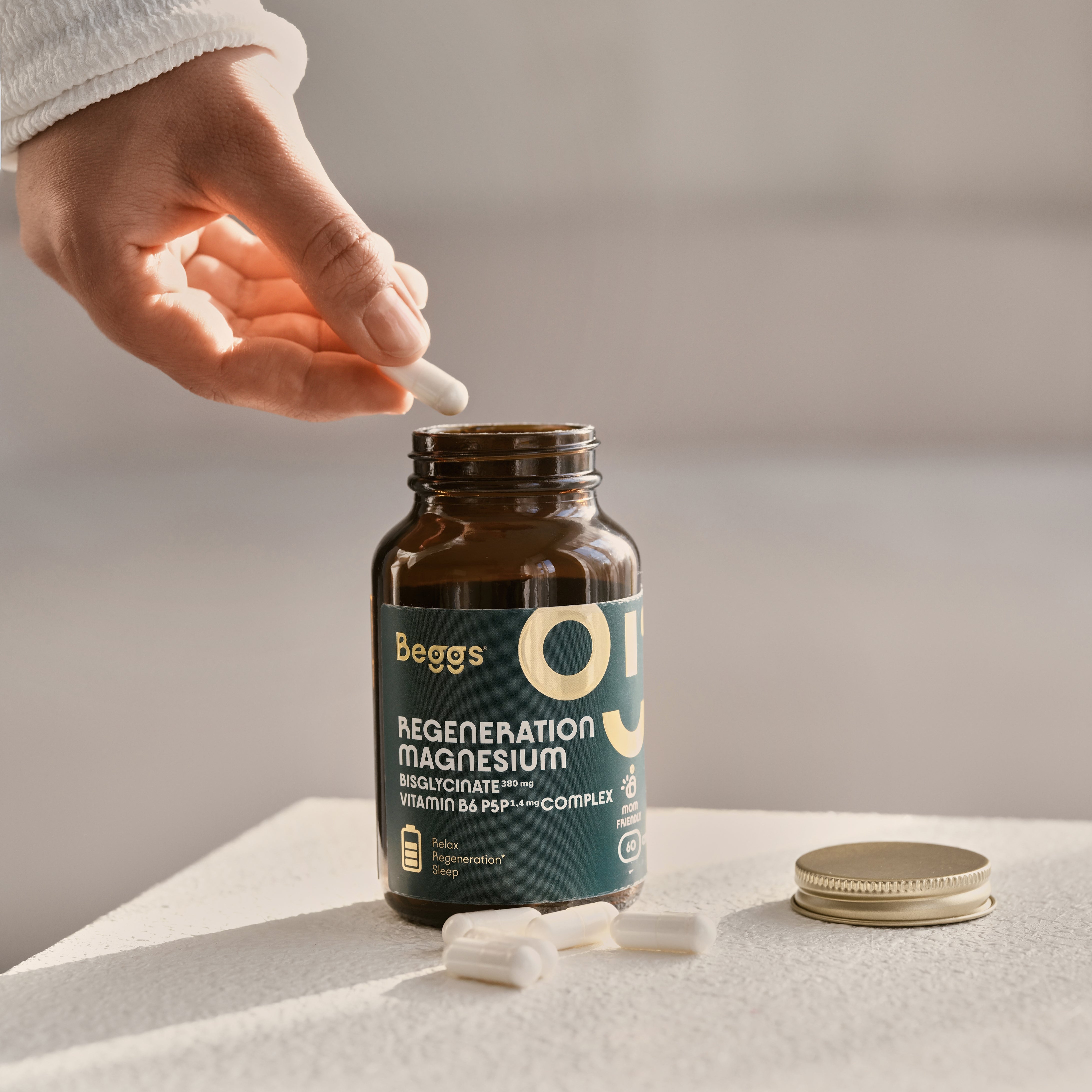 • Beggs Magnesium bisglycinate + P5P COMPLEX – 60 kapslí ve skleněné uzavíratelné lahvičce. Doporučená denní dávka jsou 2 kapsle.