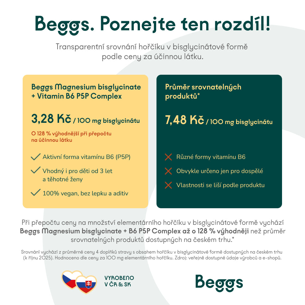 Hlavní benefity Beggs Magnesium bisglycinate + P5P