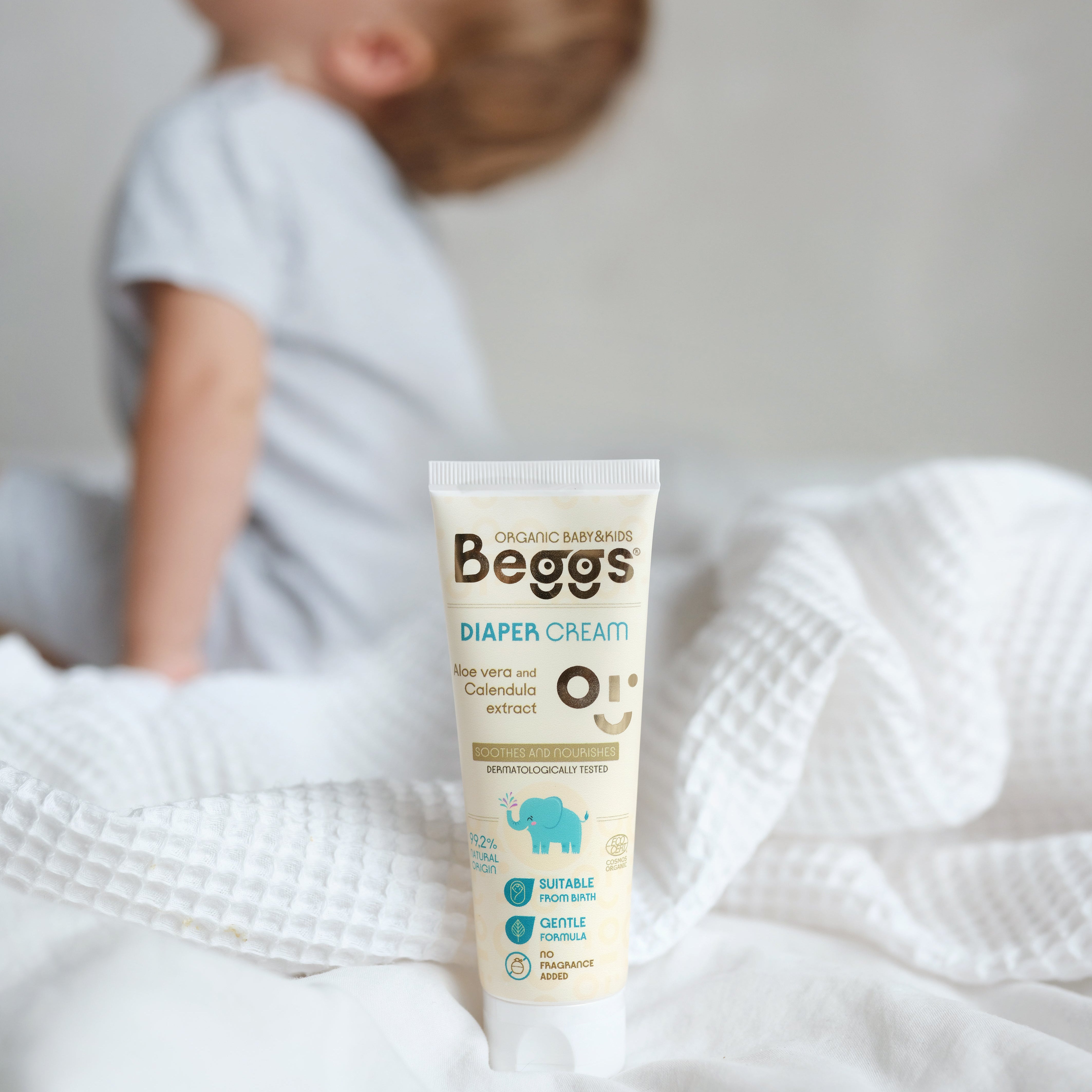 Pokožka pod plenkou je obzvlášť citlivá a náchylná k podráždění. Pravidelná aplikace krému při každém přebalování pomáhá chránit před zarudnutím, opruzeninami a vysušením. Beggs krém vytváří jemnou ochrannou vrstvu, která pokožku zklidňuje a podporuje její přirozenou regeneraci.