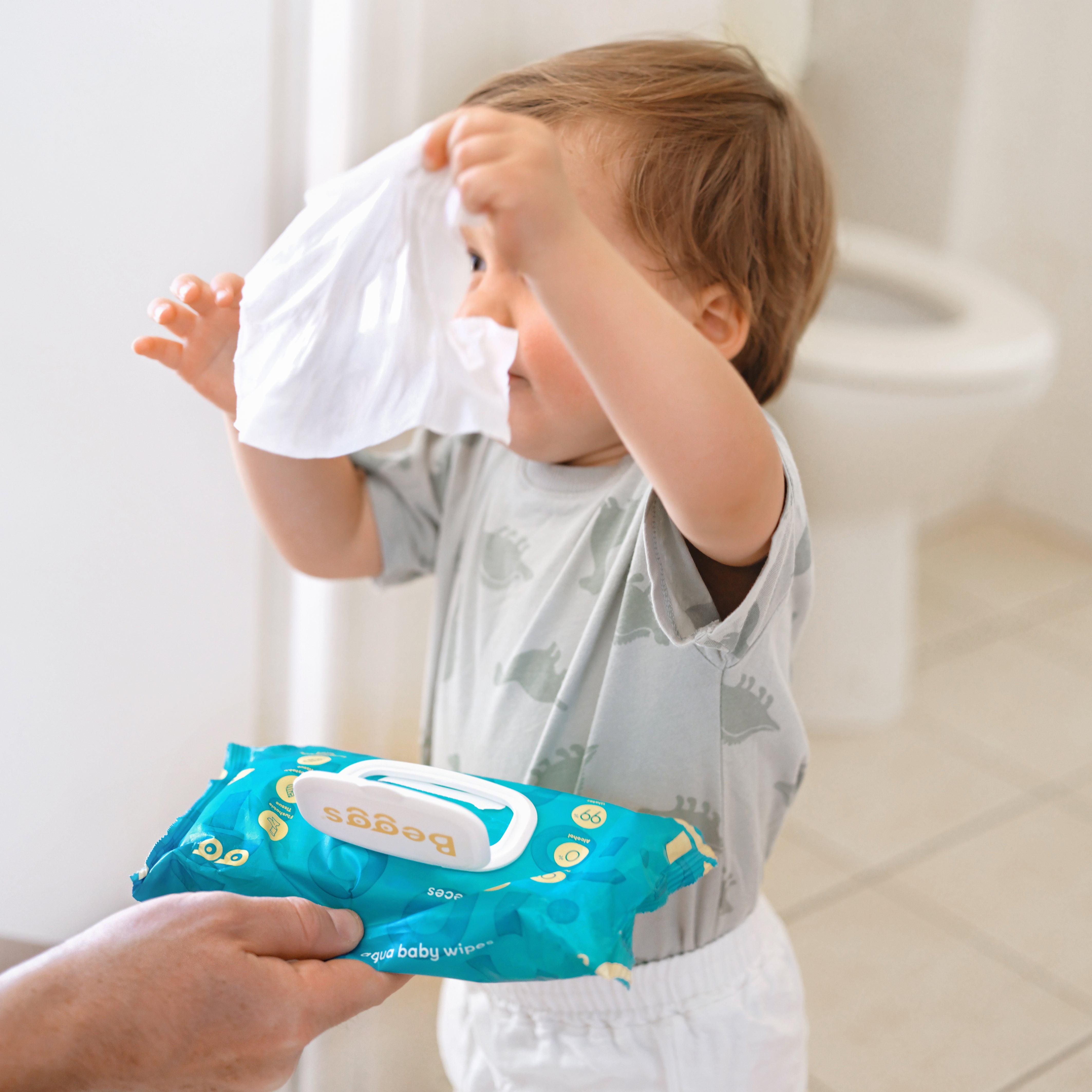 Splachovatelné vlhčené ubrousky Beggs jsou šetrné k dětské pokožce, a také šetrné k přírodě – chytrá volba pro každodenní péči i zodpovědné rodičovství.